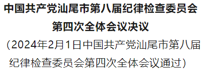中国共产党汕尾市第八届纪律检查委员会第四次全体会议,于2024年2月1日在汕尾市城区举行。市委书记逯峰出席全会并讲话,市委副书记、市长郑海涛传达了习近平总书记在二十届中央纪委三次全会上的重要讲话精神,以及二十届中央纪委三次全会、十三届省纪委三次全会精神。全会审议通过了市委常委、市纪委书记李志代表市纪委常委会所作的《发扬彻底的自我革命精神,纵深推进新征程汕尾纪检监察工作高质量发展》工作报告。 全会认真学习了习近平总书记在二十届中央纪委三次全会上的重要讲话精神。一致认为,讲话深刻阐述党的自我革命的重要思想,科学回答关于党的自我革命的三个重大问题,明确提出推进自我革命“九个以”的实践要求,对持续发力、纵深推进反腐败斗争作出战略部署,对纪检监察干部队伍寄予殷切期望、提出明确要求。讲话高瞻远瞩、视野宏阔、思想深邃、内涵丰富,充分彰显了习近平总书记强烈历史主动精神、非凡理论勇气、卓越政治智慧,具有很强的政治性、思想性、指导性,为新时代新征程深入推进全面从严治党、党风廉政建设和反腐败斗争提供了根本遵循,为做好新征程纪检监察工作提供了强大思想武器和科学行动指南。 全会认真学习了中央纪委全会、省纪委全会精神。全会认为,李希同志所作的工作报告,通篇贯穿习近平新时代中国特色社会主义思想,深刻阐述了纪检监察机关深入学习领悟党的自我革命的重要思想的科学方法和实践要求,对纪检监察机关深入贯彻落实习近平总书记关于党的自我革命的重要思想,纵深推进新征程纪检监察工作高质量发展,为全面建设社会主义现代化国家提供有力保障具有十分重要的指导意义。黄坤明同志在十三届省纪委三次全会上的讲话,态度鲜明、立场坚定,论述深刻、部署具体,充分彰显了省委坚持“两个确立”、做到“两个维护”,以彻底的自我革命精神纵深推进全面从严治党的高度政治自觉。宋福龙同志所作的工作报告,回顾了2023年全省纪检监察工作,系统部署了2024年工作任务,为做好新一年全省纪检监察工作指明了方向和路径。 全会认真学习了逯峰同志的讲话。全会认为,讲话充分肯定过去一年全市全面从严治党取得的明显成效,充分肯定全市纪检监察工作,强调要自觉把习近平总书记关于党的自我革命的重要思想贯彻到全面从严治党全过程各方面,以高质量的纪检监察工作保障汕尾高质量发展、现代化建设,充分体现了市委带头履行全面从严治党主体责任的政治担当和推进全面从严治党向纵深发展的坚定决心。 全会指出,2023年全市纪检监察机关在省纪委监委和市委的坚强领导下,深入学习贯彻党的二十大和习近平总书记视察广东重要讲话、重要指示精神,深刻领悟“两个确立”的决定性意义,增强“四个意识”、坚定“四个自信”、做到“两个维护”,时刻保持解决大党独有难题的清醒和坚定,扎实开展学习贯彻习近平新时代中国特色社会主义思想主题教育和纪检监察干部队伍教育整顿,深入开展党风廉政建设和反腐败斗争,推动健全全面从严治党体系,严管严治锻造纪检监察铁军,为汕尾建设革命老区高质量发展示范区提供了坚强保障。在肯定成绩的同时,全会实事求是分析了纪检监察工作存在的不足,要求高度重视,采取有效措施加以解决。 全会强调,2024年是中华人民共和国成立75周年,是实现“十四五”规划目标任务的关键一年。要坚持以习近平新时代中国特色社会主义思想为指导,全面贯彻落实党的二十大和二十届二中全会精神,深入贯彻落实习近平总书记关于党的自我革命的重要思想,认真贯彻落实习近平总书记视察广东重要讲话、重要指示精神,坚决落实全面从严治党战略方针,贯彻落实二十届中央纪委三次全会、十三届省纪委三次全会和市委八届六次全会部署,深刻领悟“两个确立”的决定性意义,自觉增强“四个意识”、坚定“四个自信”、做到“两个维护”,坚持稳中求进工作总基调,巩固拓展主题教育和教育整顿成果,忠诚履行党章和宪法赋予的职责,推动健全全面从严治党体系,纵深推进正风肃纪反腐,纵深推进新征程纪检监察工作高质量发展,为汕尾建设革命老区高质量发展示范区提供坚强政治保障。 一是深入学习贯彻习近平新时代中国特色社会主义思想,把对“两个确立”的坚定拥护转化为“两个维护”的自觉行动。聚焦深入贯彻党的二十大精神和习近平总书记视察广东重要讲话、重要指示精神,聚焦全面落实党中央重大决策部署和省委“1310”、市委党建引领“三六九”工程具体部署开展监督检查,确保各项任务落地见效。严明党的政治纪律和政治规矩,及时发现、着力解决“七个有之”问题。加大对“百千万工程”部署落实情况的监督检查力度,助力打好“头号工程”争先进位攻坚战。 二是坚定不移反腐惩恶,坚决铲除腐败滋生的土壤和条件。坚持党对反腐败斗争的集中统一领导,坚持态度不变、力度不减、重心不偏,继续紧盯重点问题、重点领域、重点对象,把严惩政商勾连的腐败作为攻坚战重中之重,坚决查处不收敛、不收手、不知止的腐败分子。坚持以案促改,强化以案促治,持续压缩腐败滋生空间。持续加大对行贿行为的查处力度,纵深推进铲除“围猎”这个政治生态“污染源”。创新警示教育方式,推动新时代廉洁文化